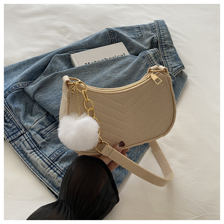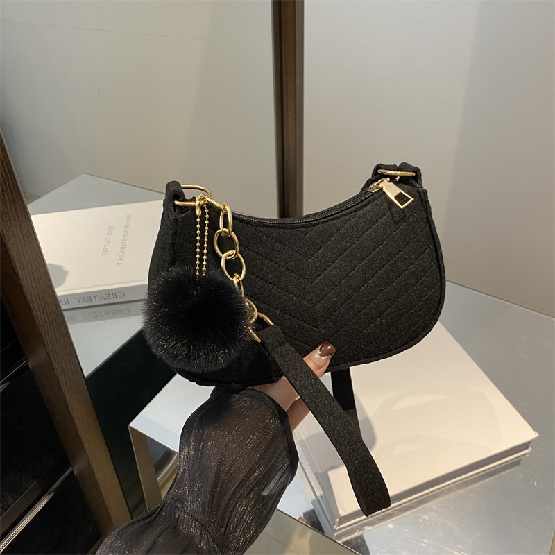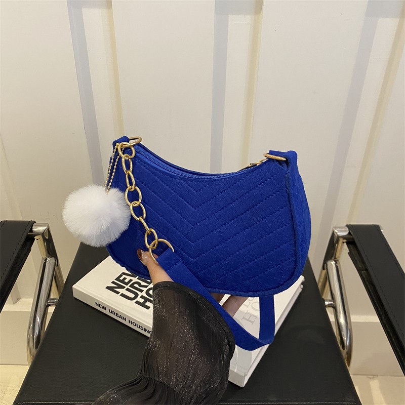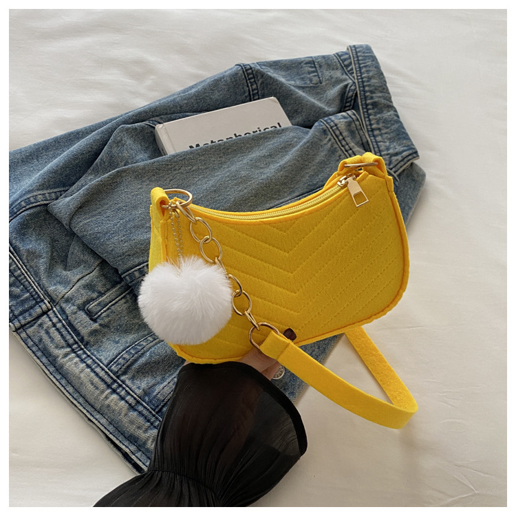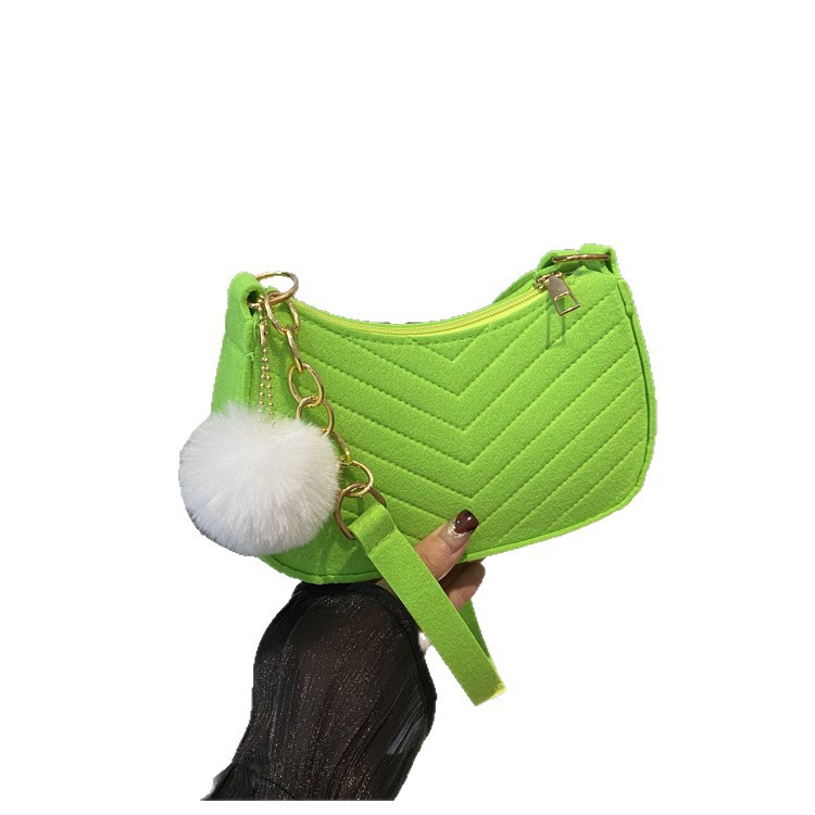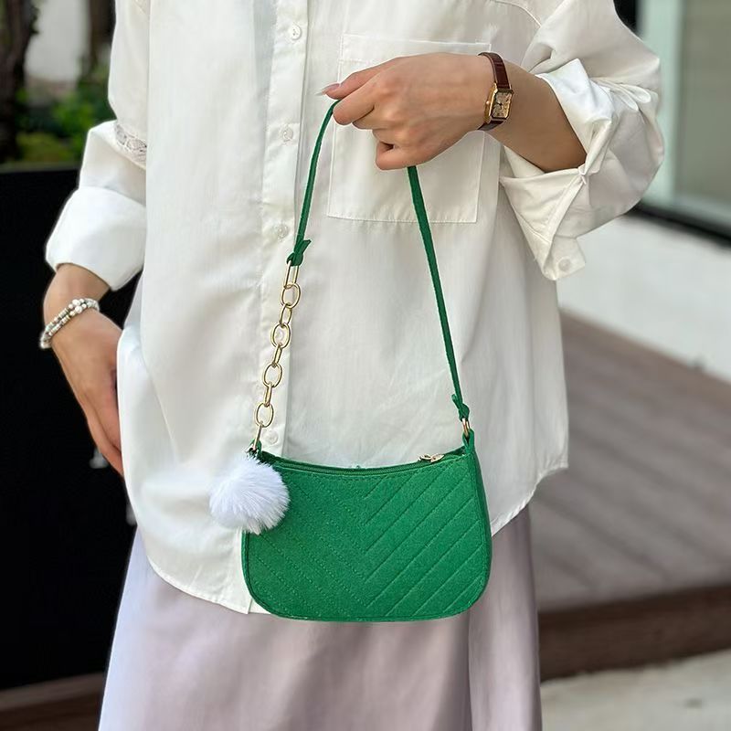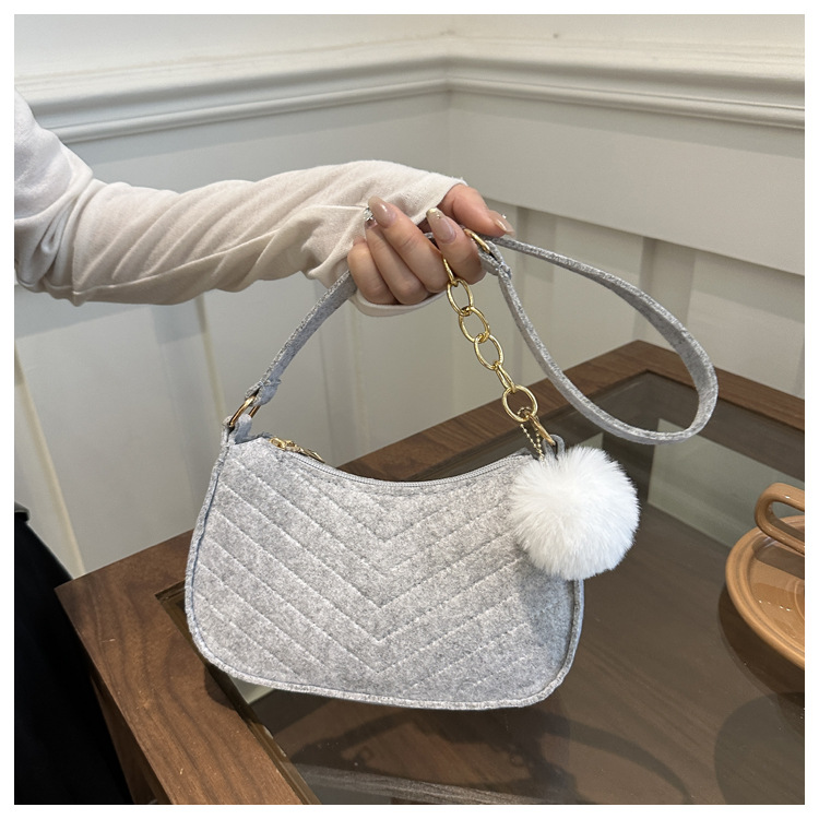 Solid Color Pom-Pom Women's Bag 2025 Winter New Fresh Felt Underarm Bag Embossed Fashion Single Shoulder Stylish Small Square Bag
