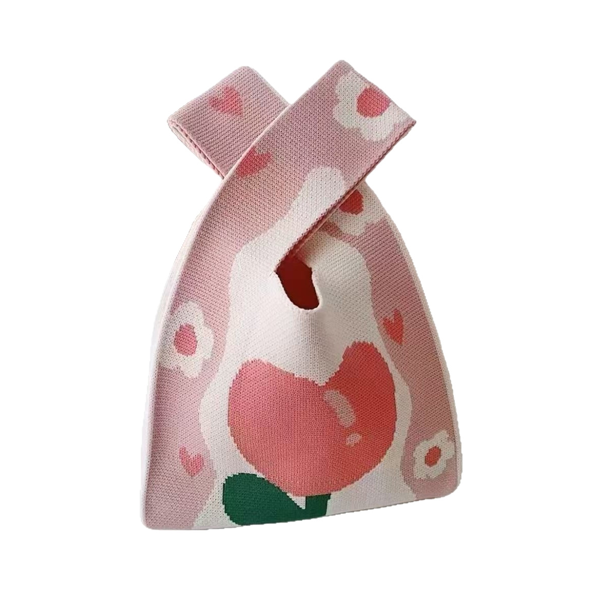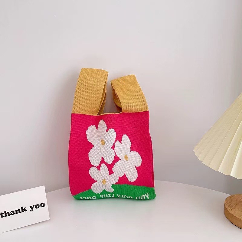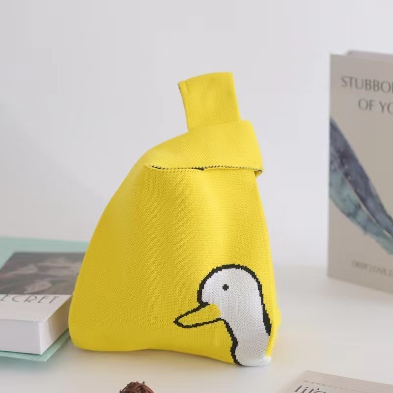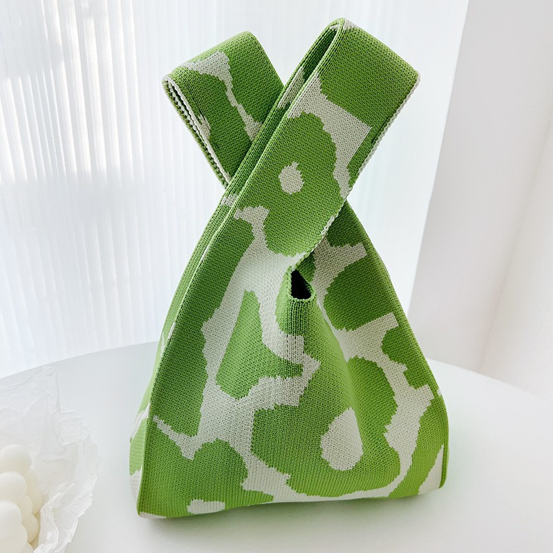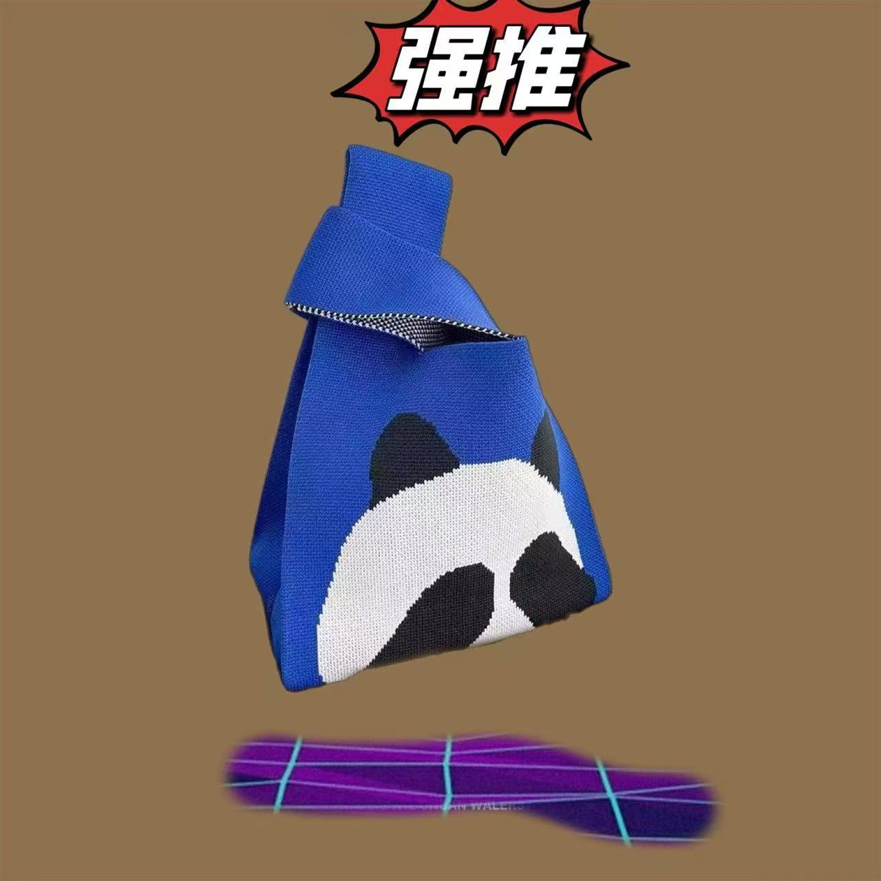 Panda Animal Four Seasons Flower Knitted Bag for Women, Bamboo Bear Handheld Bag, Wrist Bag for Walking and Shopping, Lazy Backpack