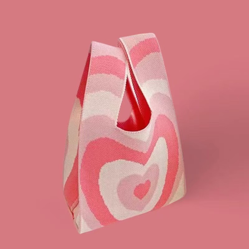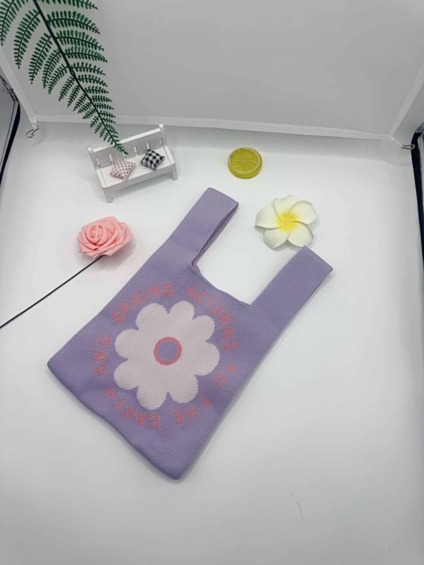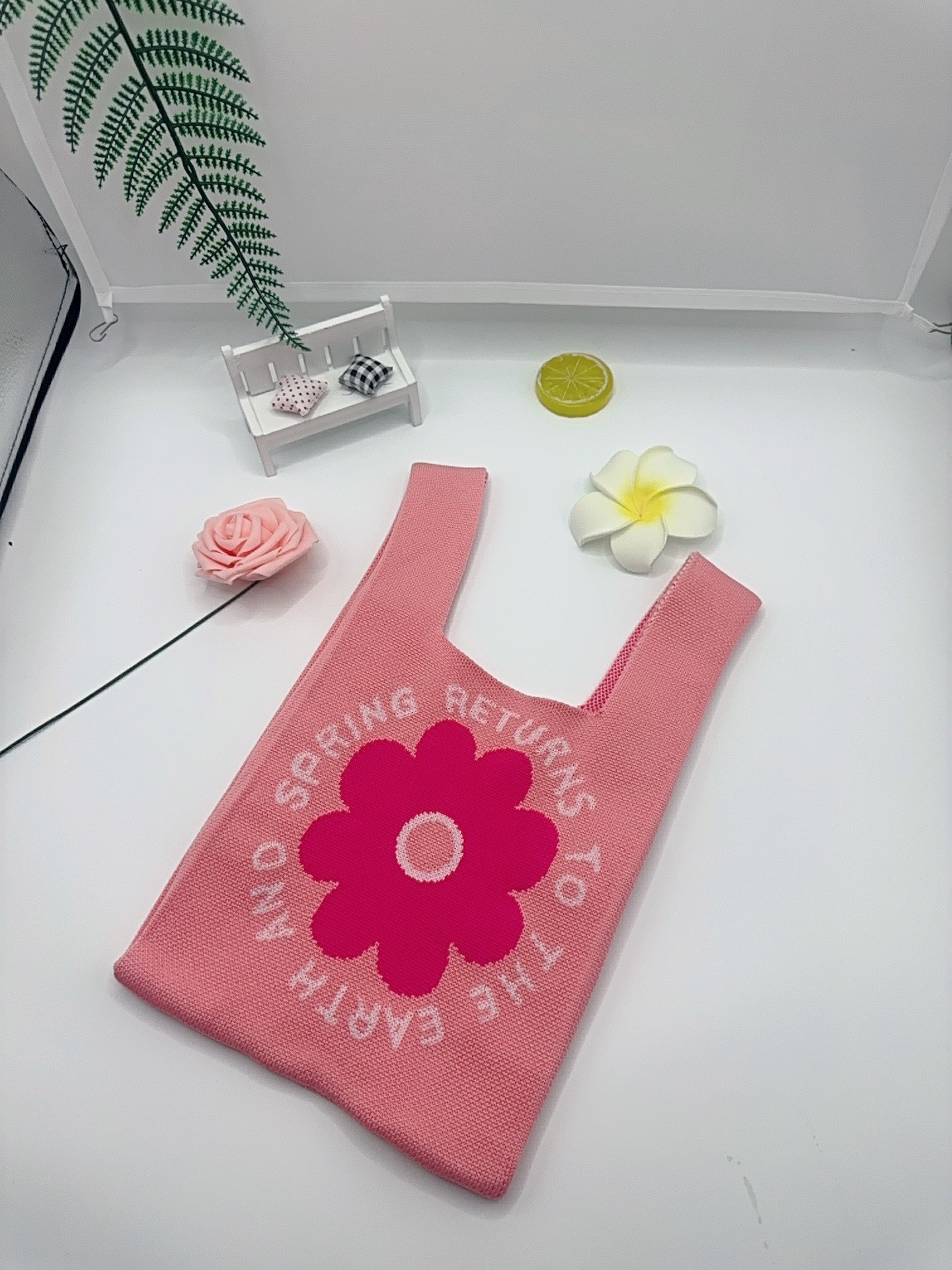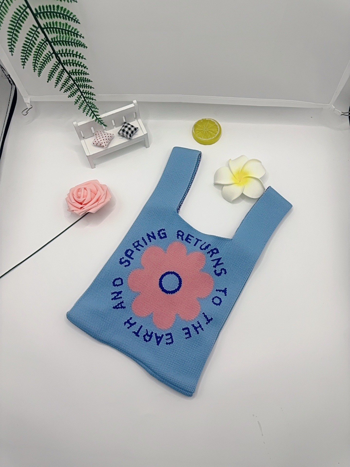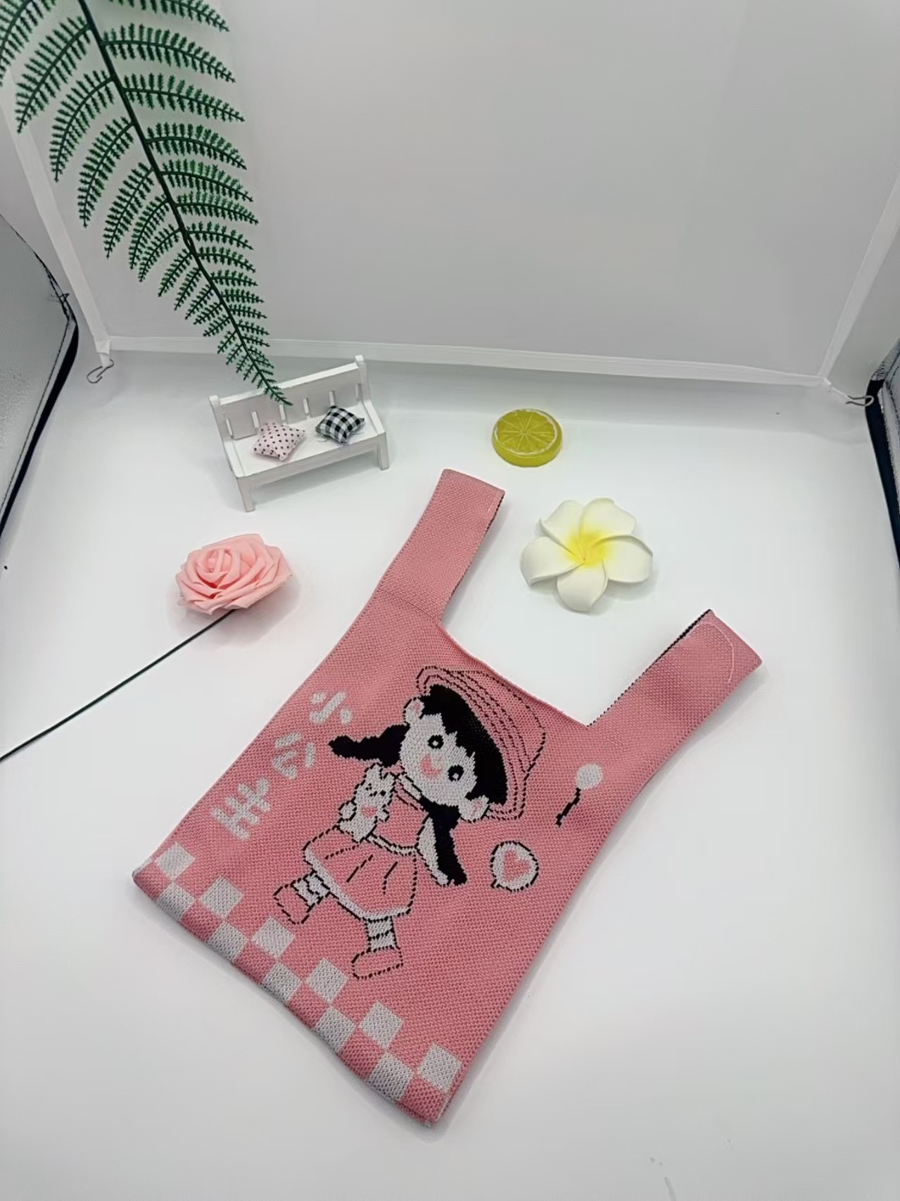 Panda Animal Four Seasons Flower Knitted Bag for Women, Bamboo Bear Handheld Bag, Wrist Bag for Walking and Shopping, Lazy Backpack
