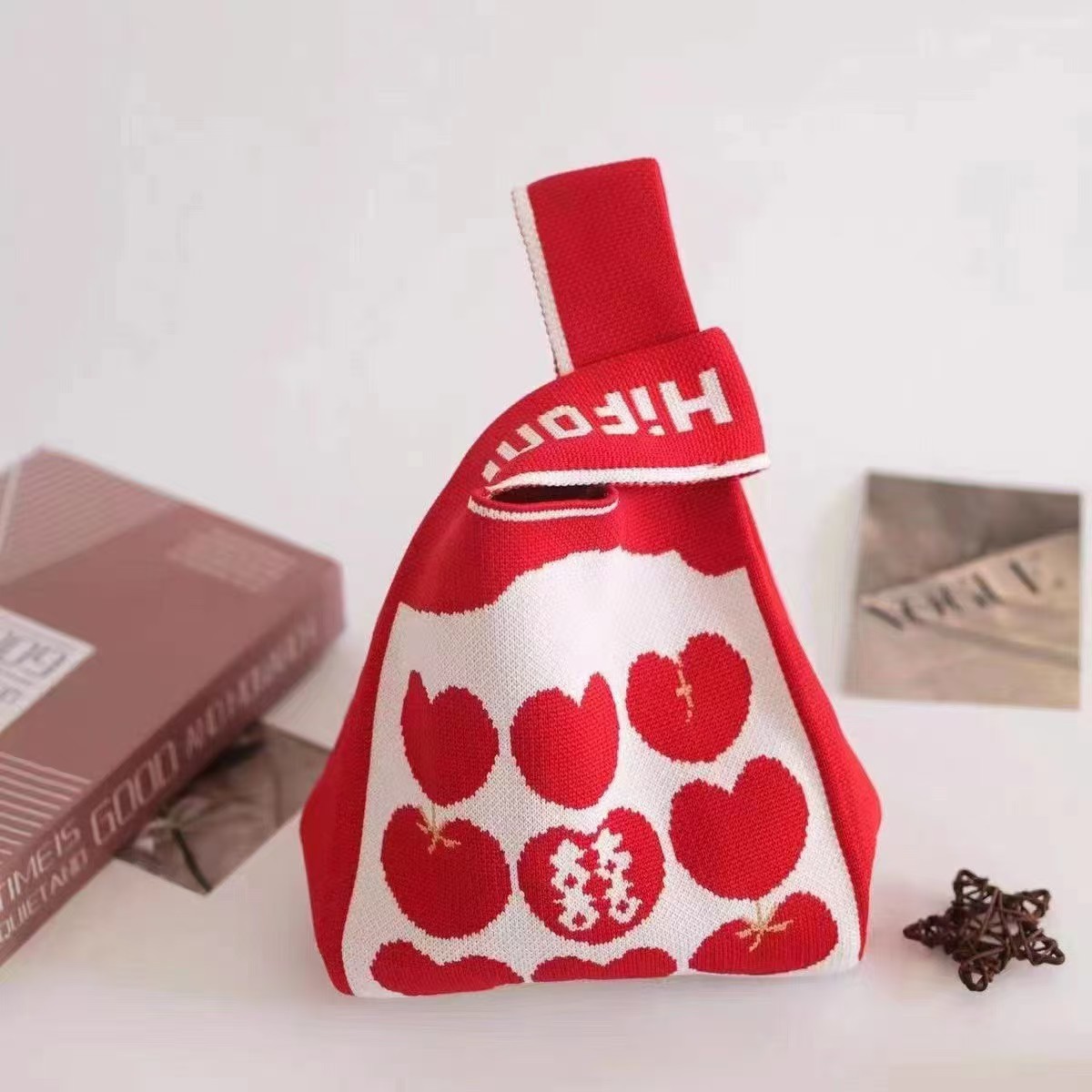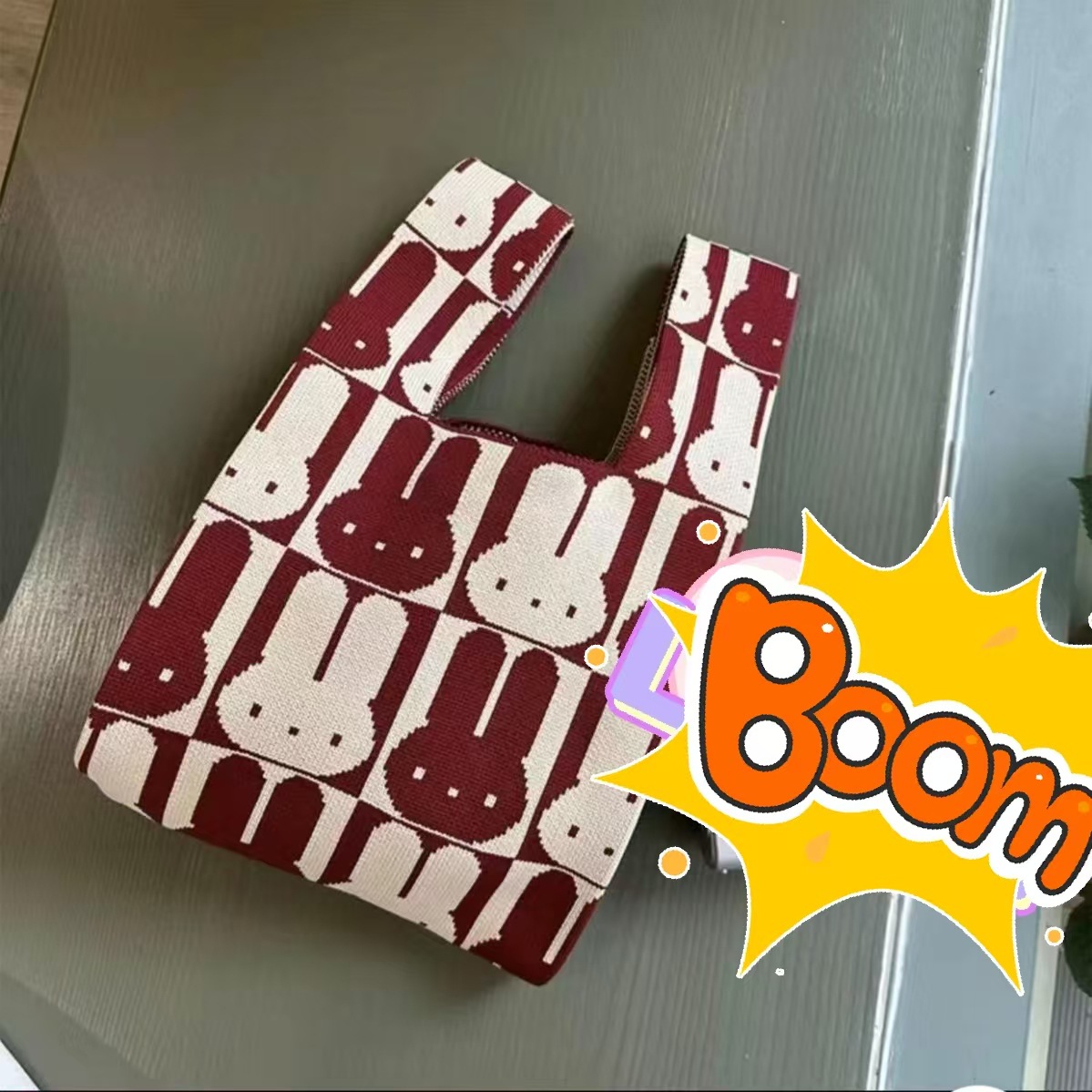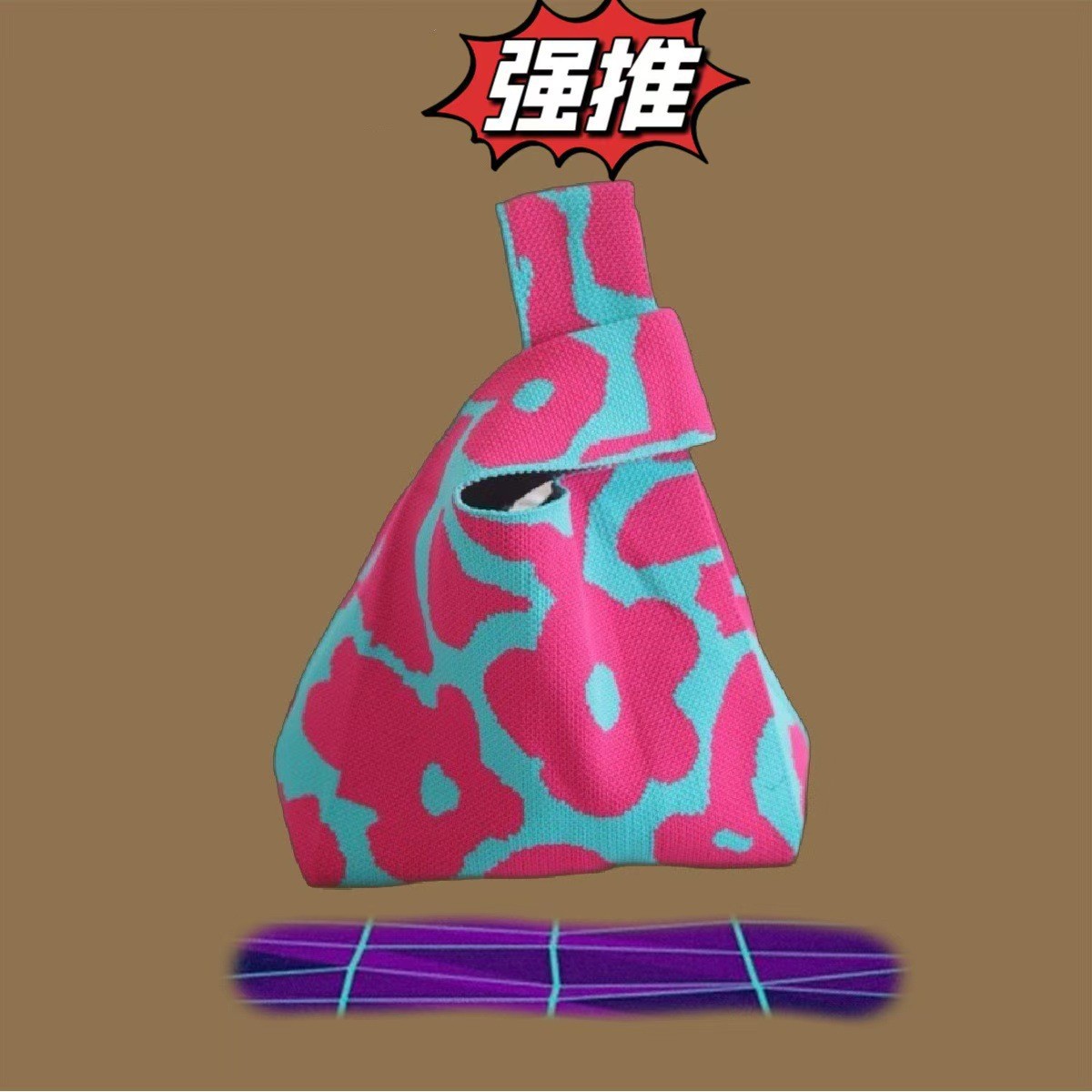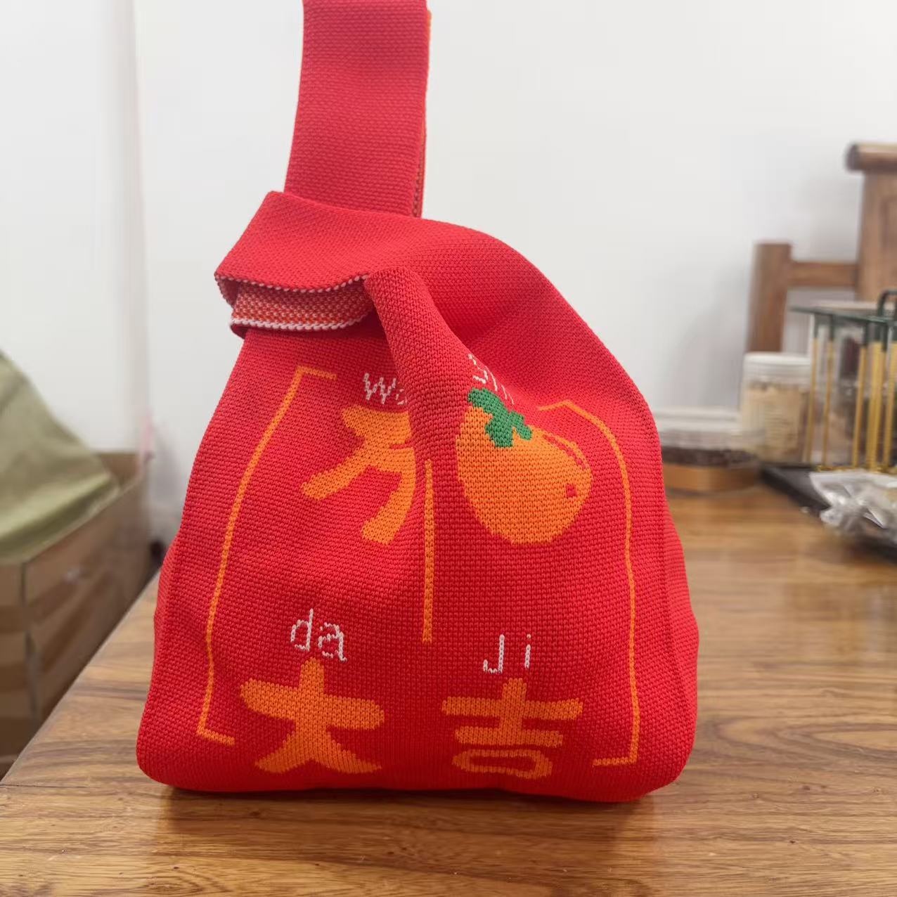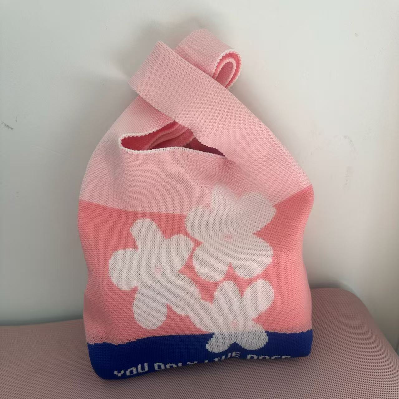 Panda Animal Four Seasons Flower Knitted Bag for Women, Bamboo Bear Handheld Bag, Wrist Bag for Walking and Shopping, Lazy Backpack