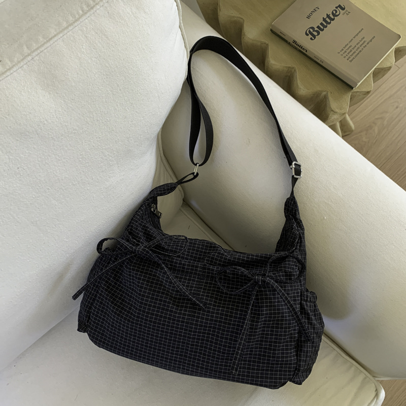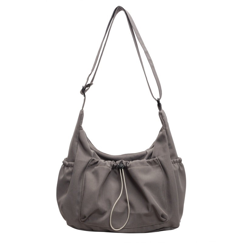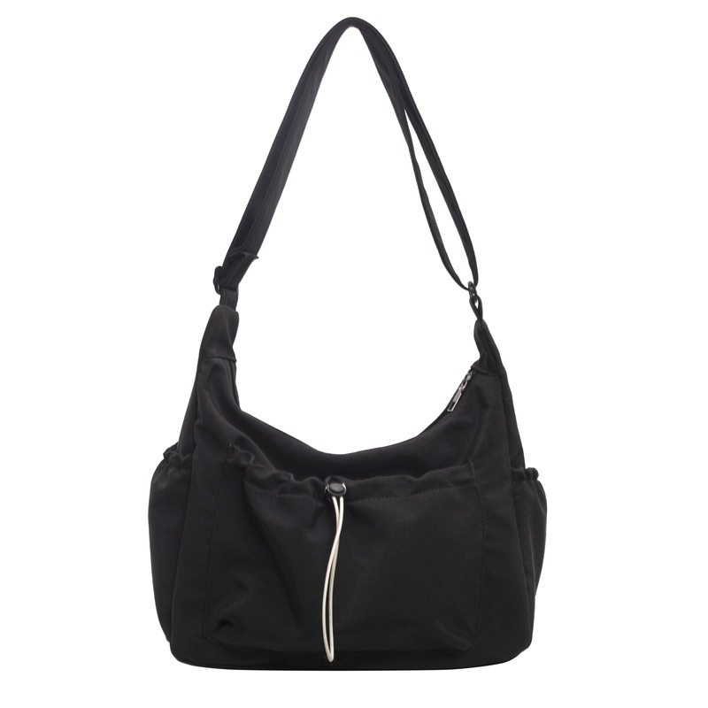 Korean Fashion Nylon Crossbody Bag 2024 New Casual Versatile Pleated Shoulder Bag Large Capacity Solid Color Canvas Bag