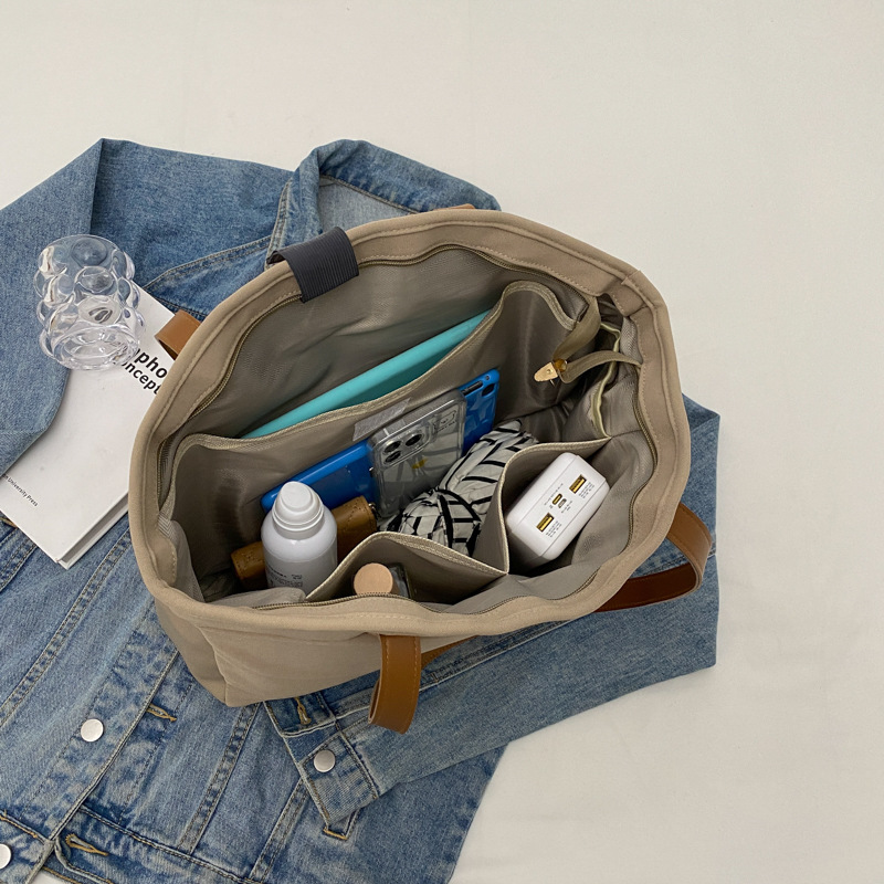 Simple Tote Bag for Women, Large Capacity Handbag, Single Shoulder Bag, Multi-Compartment Pocket, New Summer Simple Commuter Canvas Bag