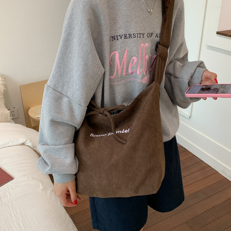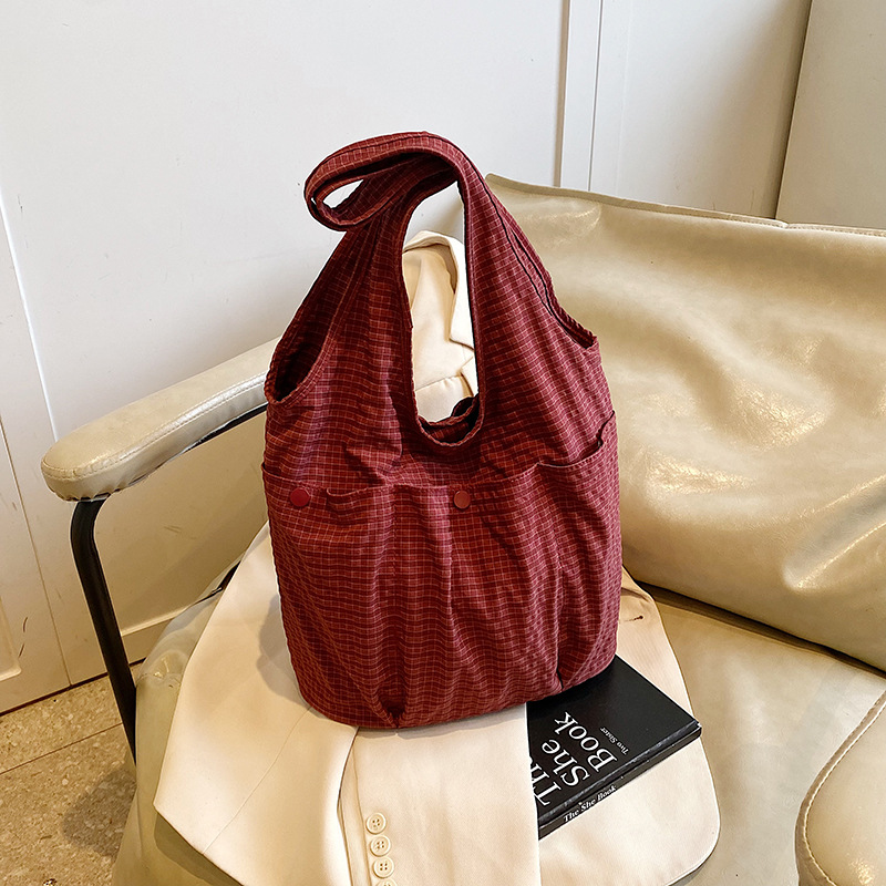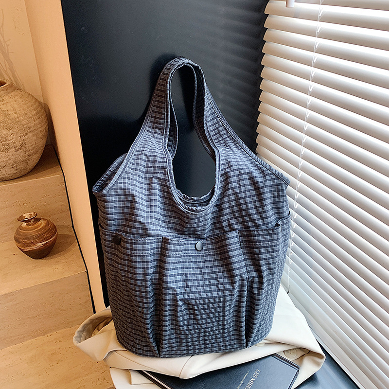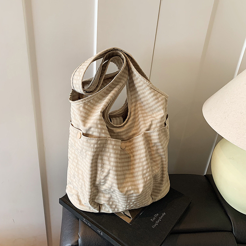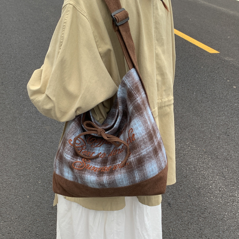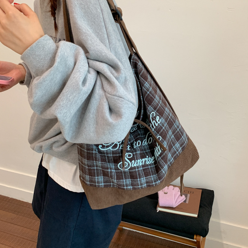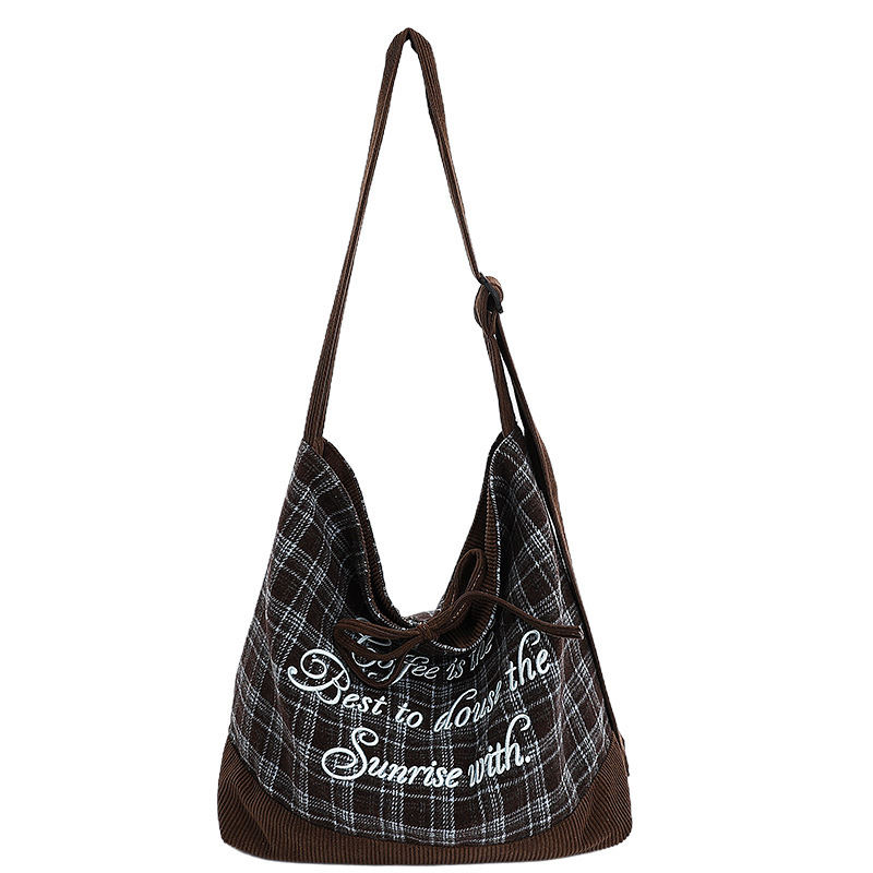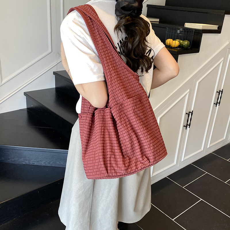 New Plaid Single Shoulder Bag for Women, Large Capacity Lazy Style Canvas Bag, Double-Sided Commuter Bag, Student Class Backpack