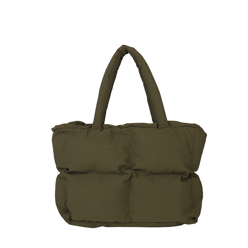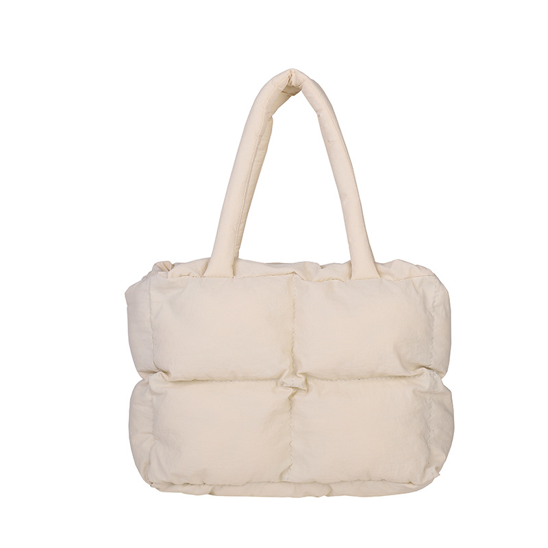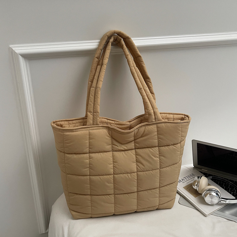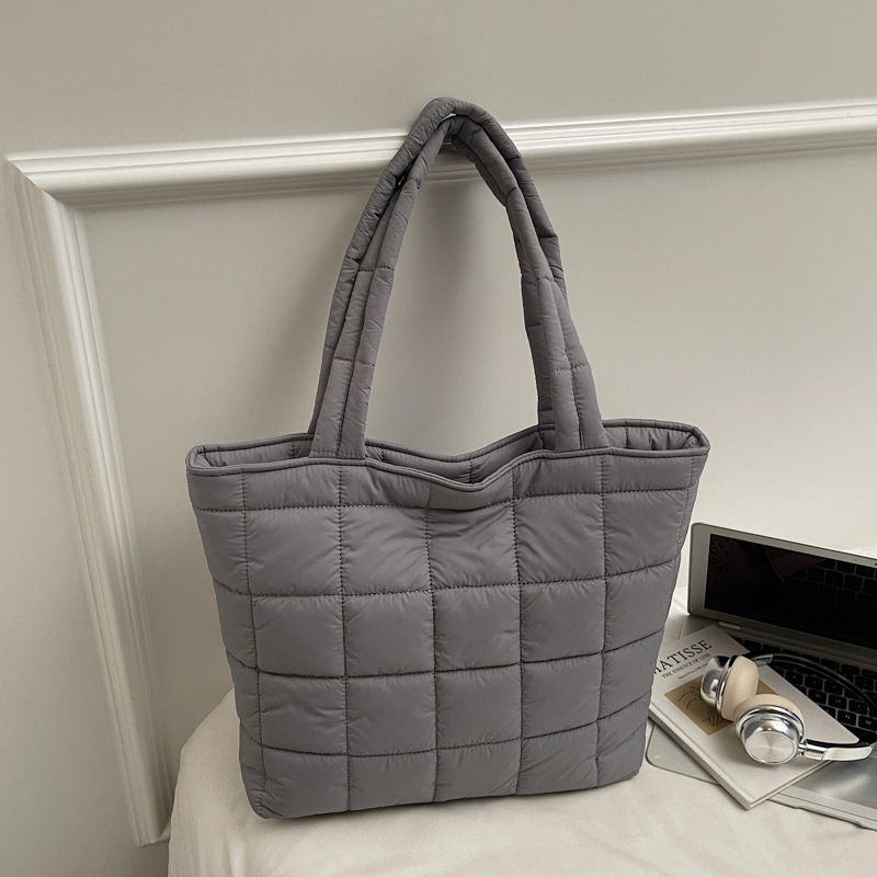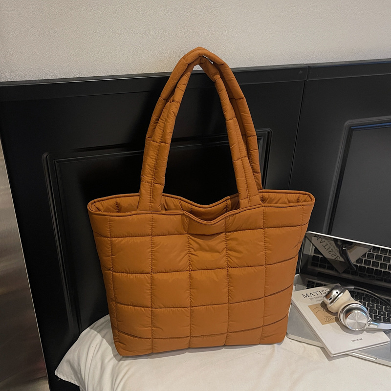 2025 Winter New Cross-Border Down Cotton Bag Women's Bag Simple Cotton-Filled Space Bag Tote Bag Checkered Handbag