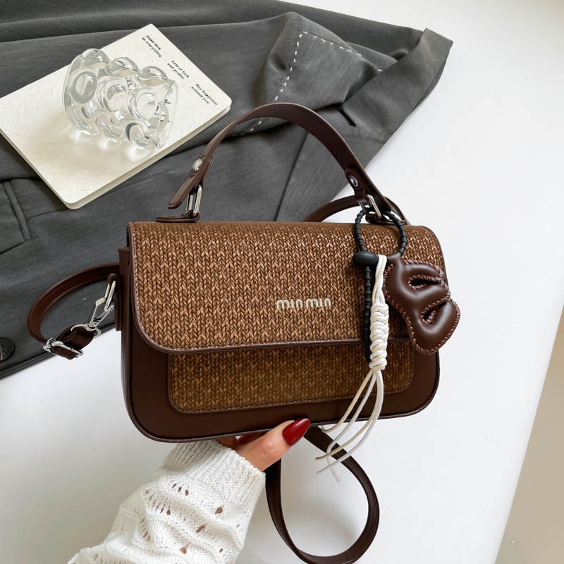 Cross-Border Texture Handbag for Women 2025 Autumn Winter New Vintage Woven Pattern Single Shoulder Fashion Crossbody Small Square Bag