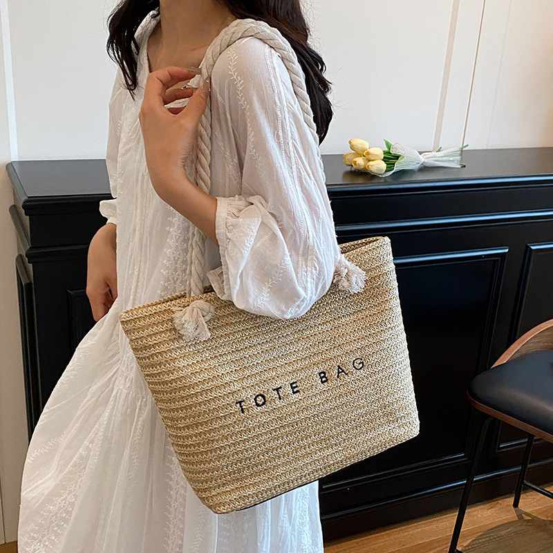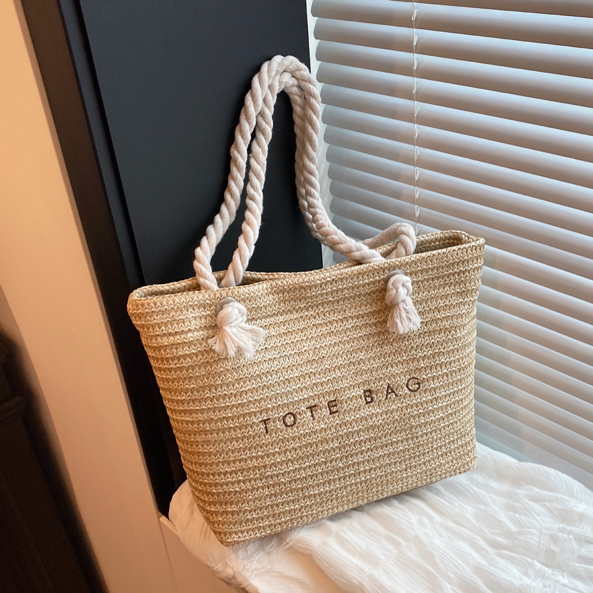 Cross-Border INS Paper Rope Woven Bag for Women, Internet Celebrity Handheld, Single Shoulder, Crossbody Strap, Vacation Beach Bag, Versatile Chain Bag