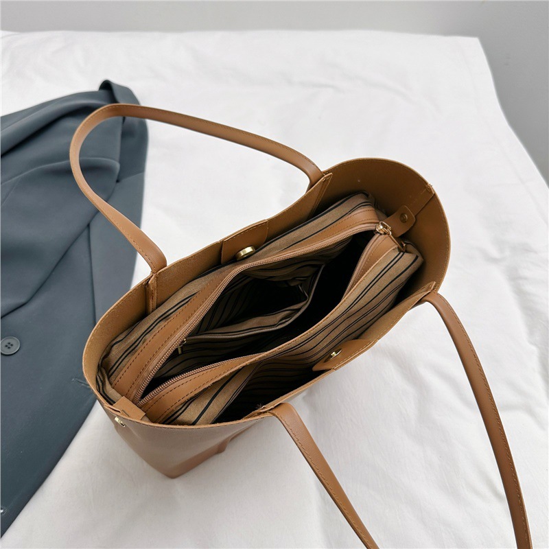 Cross-Border New Tote Bag Crossbody Bag Women's Fashion Casual Simple Shoulder Bag Large Capacity Multi-Pocket Shopping Bag