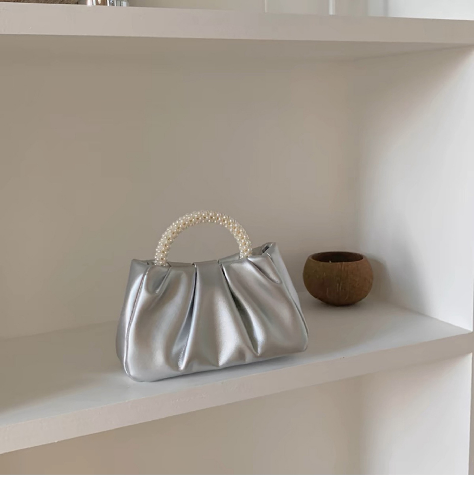 Sweet Girl Pearl Handbag Women Fashion Versatile Pleated Crossbody Cloud Bag Pearlescent Mini Phone Small Bag