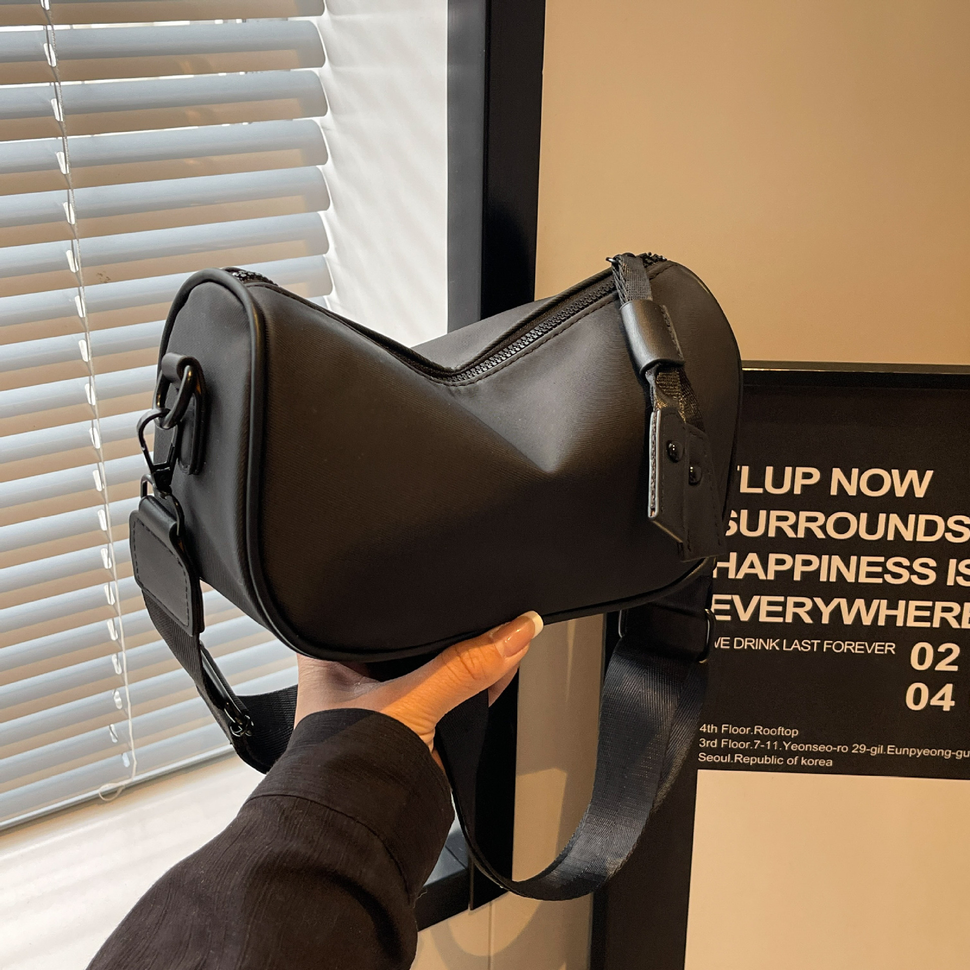 MUJI Japanese Style Large Crossbody Bag Solid Black Shoulder Bag Unisex Lightweight Triangle Bag for Women