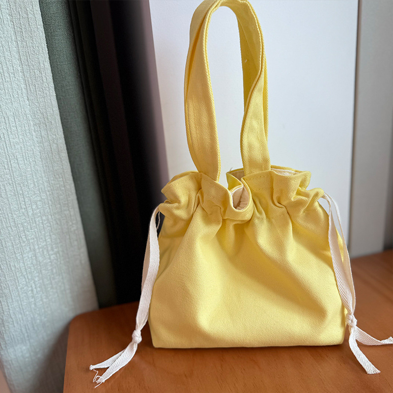 Handheld Bag Japanese Style Tote Lunch Bag Large Capacity Solid Color Drawstring Lunch Box Bag Wholesale Fresh Style Drawstring Canvas Bag