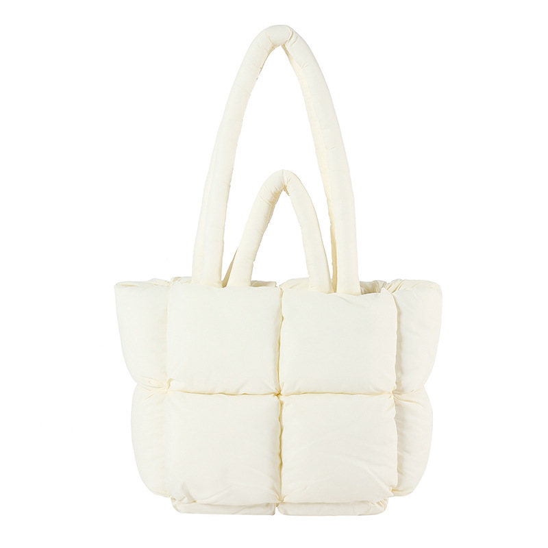 Down Cotton Jacket Bag for Women, New Niche Plaid Casual Versatile Handbag, Lazy Style Large Capacity Single Shoulder Tote Bag