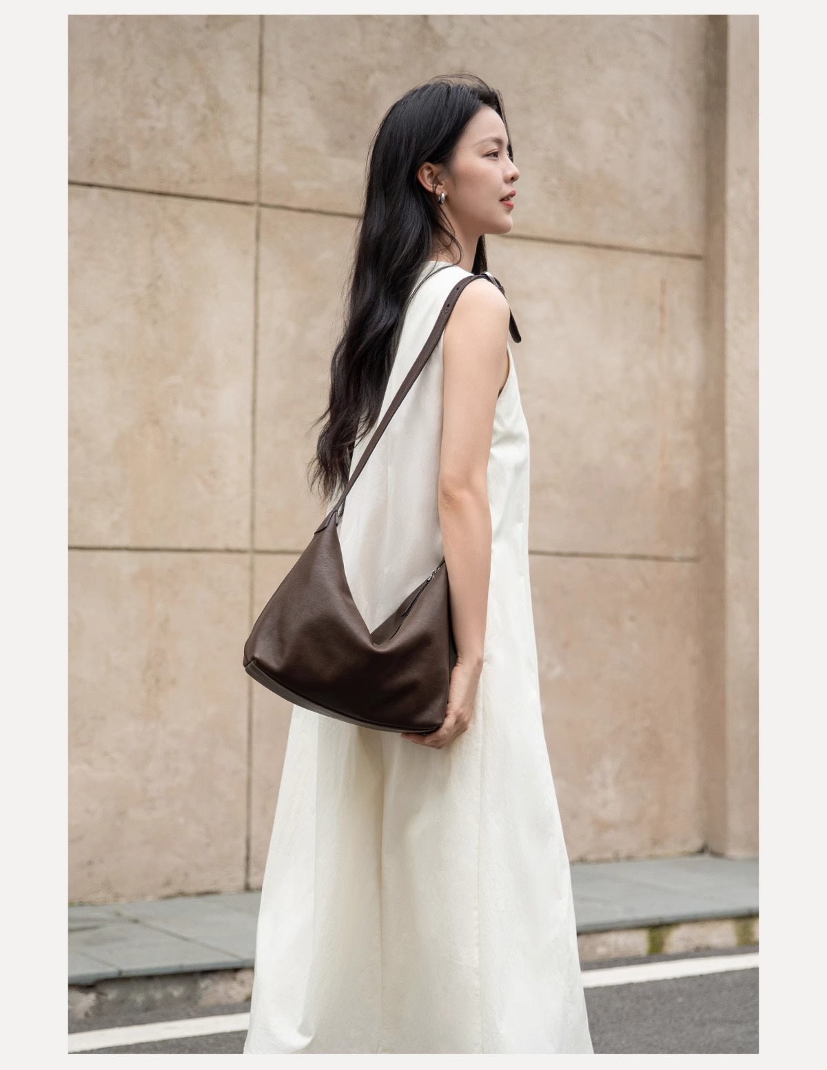 【Ximengyao Same Style】Qiu Zhen Vegetable-Tanned Cowhide Underarm Classic Hobo Bag Commuting Genuine Leather Dumpling Women's Bag -