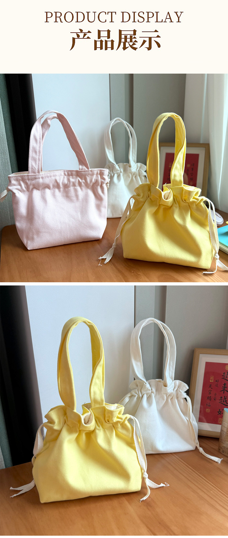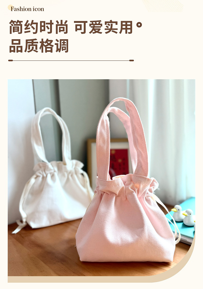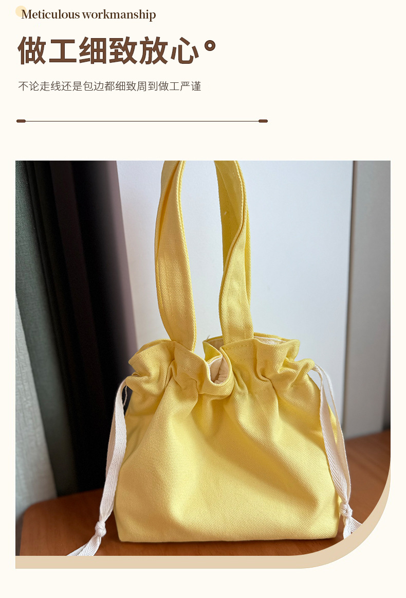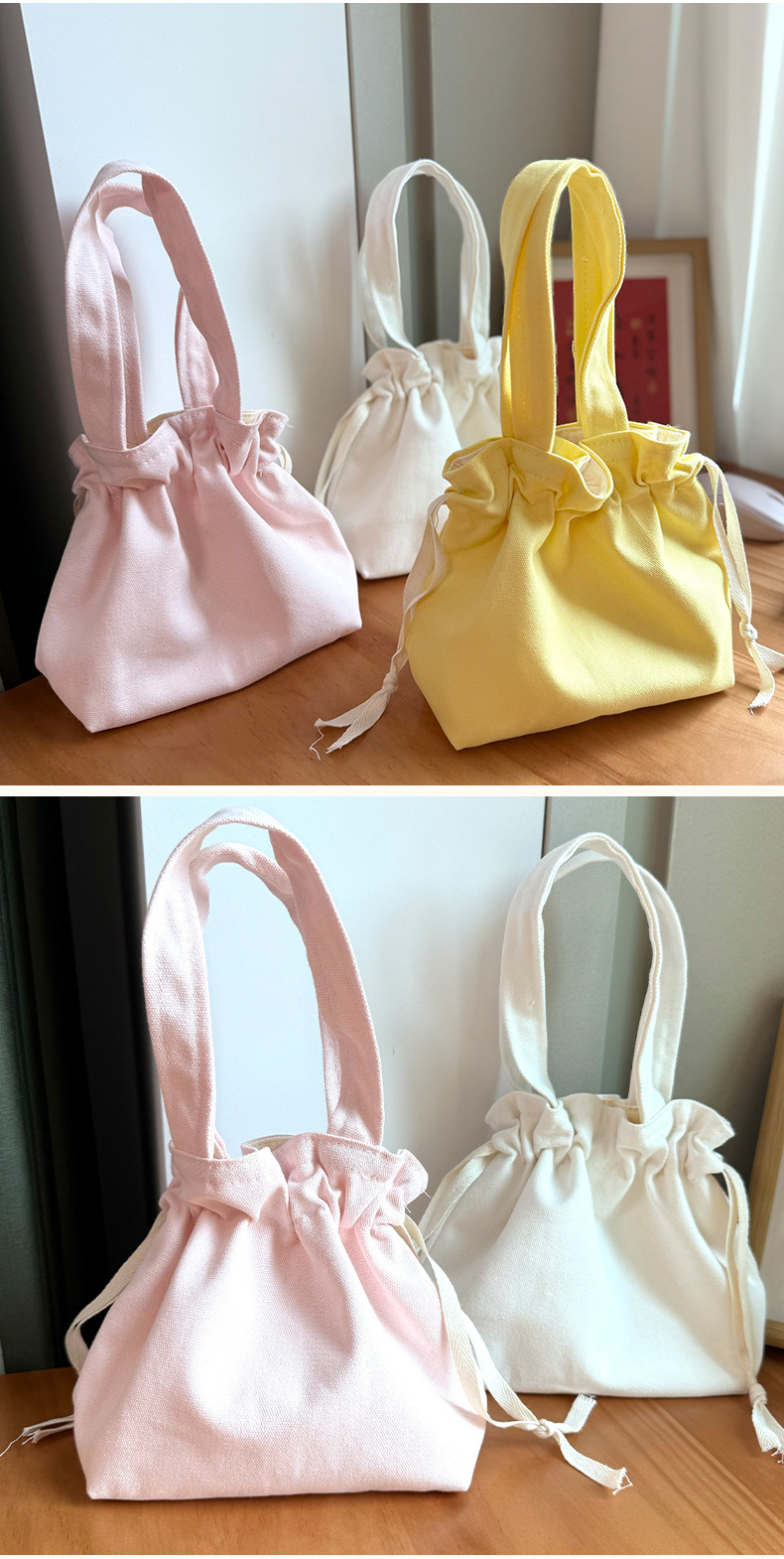 Handheld Bag Japanese Style Tote Lunch Bag Large Capacity Solid Color Drawstring Lunch Box Bag Wholesale Fresh Style Drawstring Canvas Bag