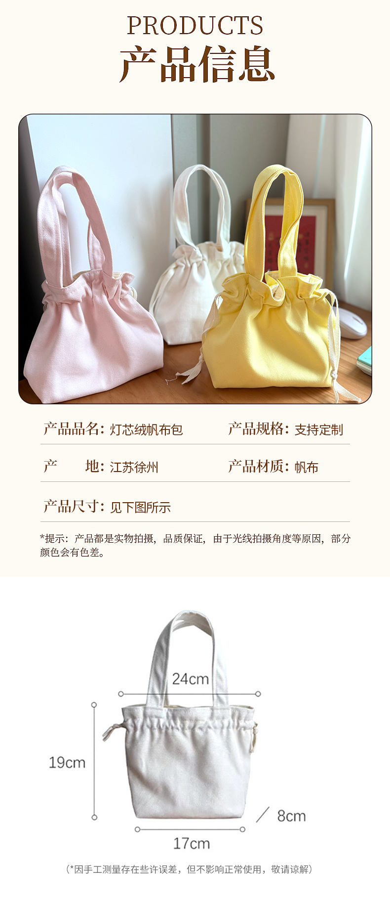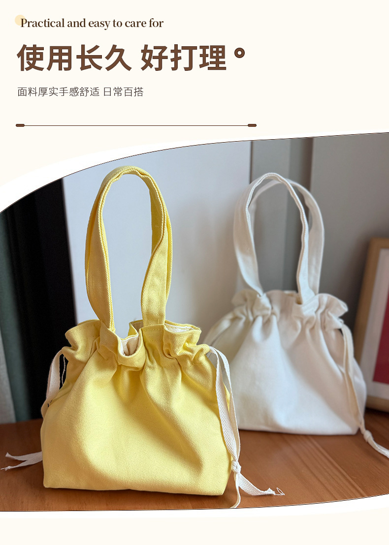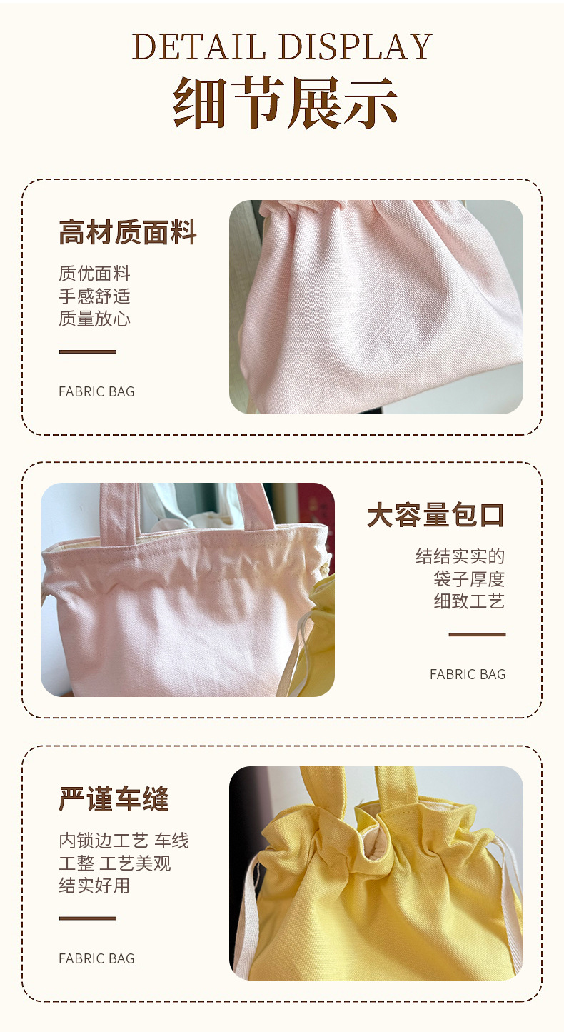 Handheld Bag Japanese Style Tote Lunch Bag Large Capacity Solid Color Drawstring Lunch Box Bag Wholesale Fresh Style Drawstring Canvas Bag